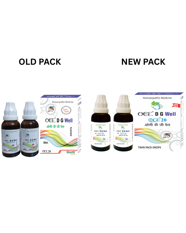 Indication:- Fever, highfever, headache,vomiting, muscles & joint pain & swelling, skin rashes, rapid decrease of  W.B.C. & Blood platelets. OCE D.G. WELL develop immunity against dengue, chikungunya and other viral fever. There are Carica Papaya, Azadirachta, Ocimum Sanctum in OCE D G WELL.